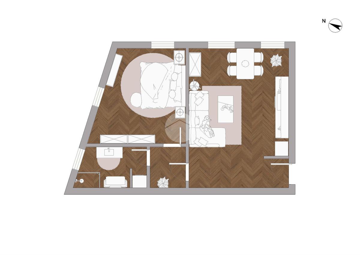 Ingresso diretto nella zona living con cucina a vista e doppio punto luce con affaccio tranquillo e piacevole, a seguire tramite disimpegno accediamo alla zona notte della casa, composta da un camera matrimoniale doppiamente esposta e per concludere l’ampio bagno dotato di vasca.